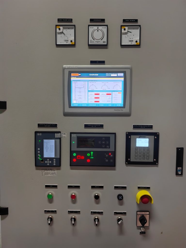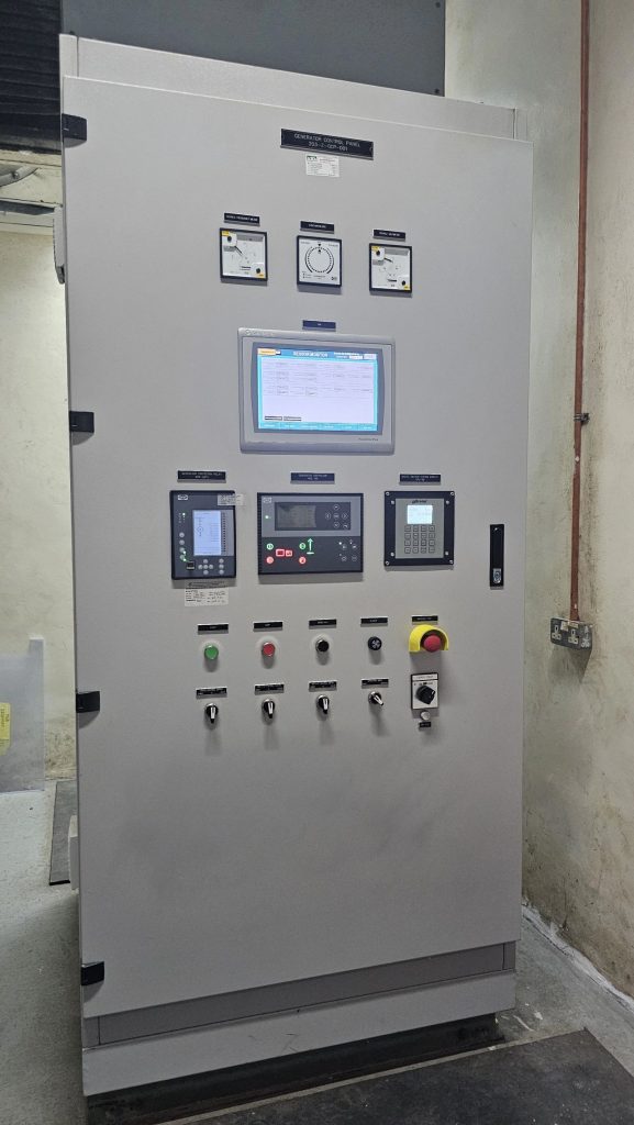 The APU is complemented by a Generator Control Panel (GCP), which acts as the “brain” of the setup. The GCP continuously monitors the incoming power supply, detects failures, and initiates the startup of the generator. It also manages the transition of load between the main power and the backup generator, protects the system against faults, and provides real-time monitoring data such as voltage, current, and frequency.