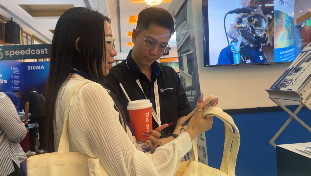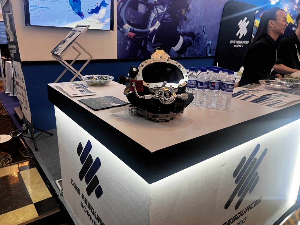 Another booth that caught the team’s attention was Dive Resources Sdn. Bhd., a company offering marine and ship maintenance, as well as NDT (Non-Destructive Testing) topside and underwater services. The team was particularly intrigued by the commercial diving helmet showcased at their booth, a vintage-style piece representing the essential gear used in underwater welding, inspection, and ship maintenance.