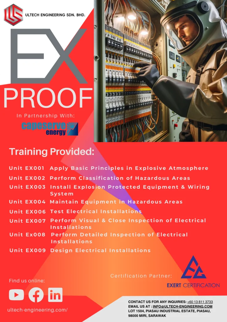 In support of this, Ultech Engineering partners with Capeserve Energy to offer IECEx CoPC preparatory courses and assessments in Sabah and Sarawak. Through this collaboration, Ultech hosts the training sessions while Capeserve Energy manages the assessment process. Participants who successfully pass the evaluation will receive official certification from Exert Certification, qualifying them as competent personnel for hazardous and explosion-risk environments.
